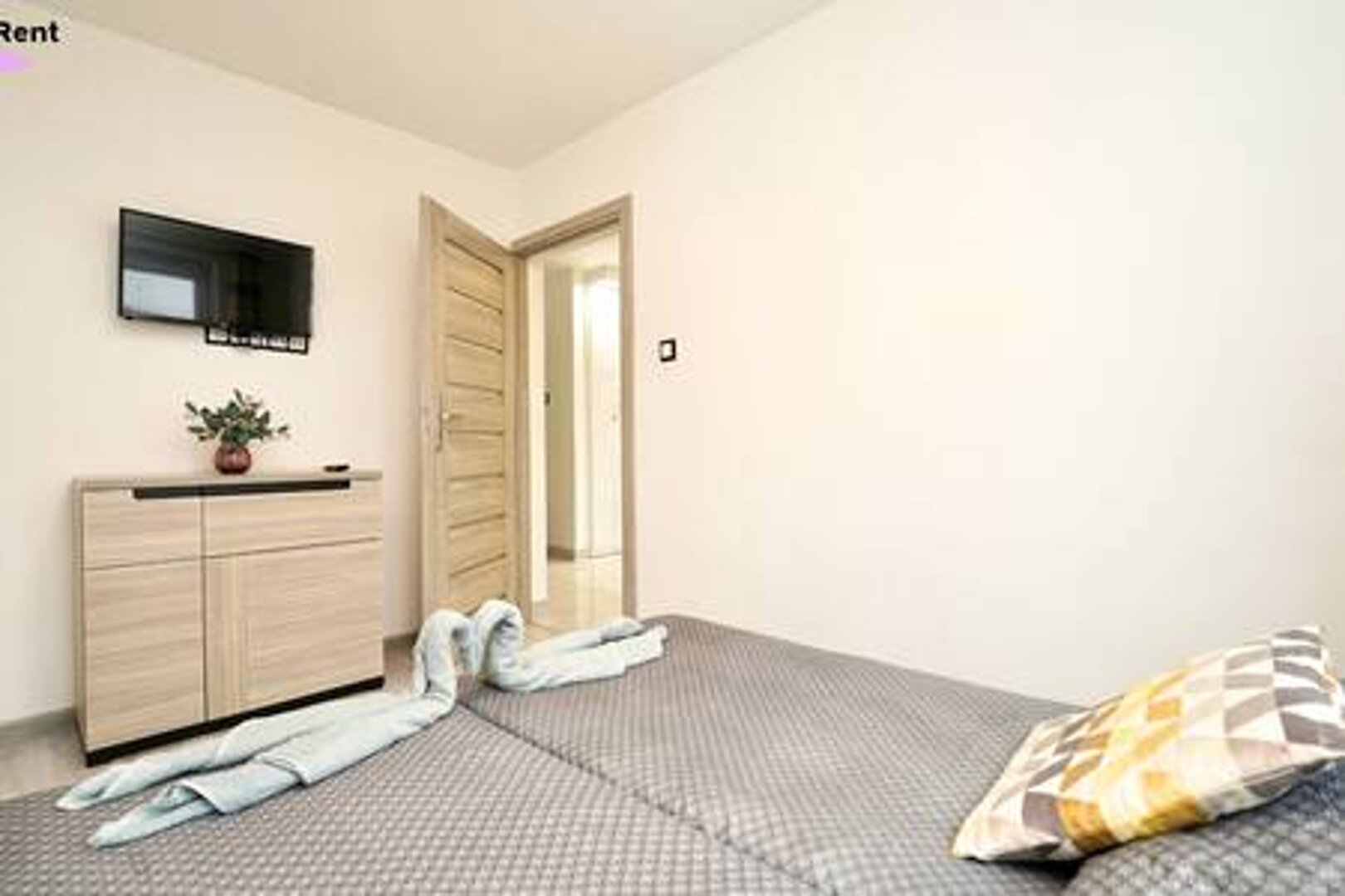 Nasz apartament oferuje w pełni wyposażoną kuchnię, sypialnię z przytulnym łóżkiem i telewizorem, łazienkę, przestronny salon z szafą, częścią jadalnianą, rozkładaną kanapą, telewizorem oraz małym balkonem.